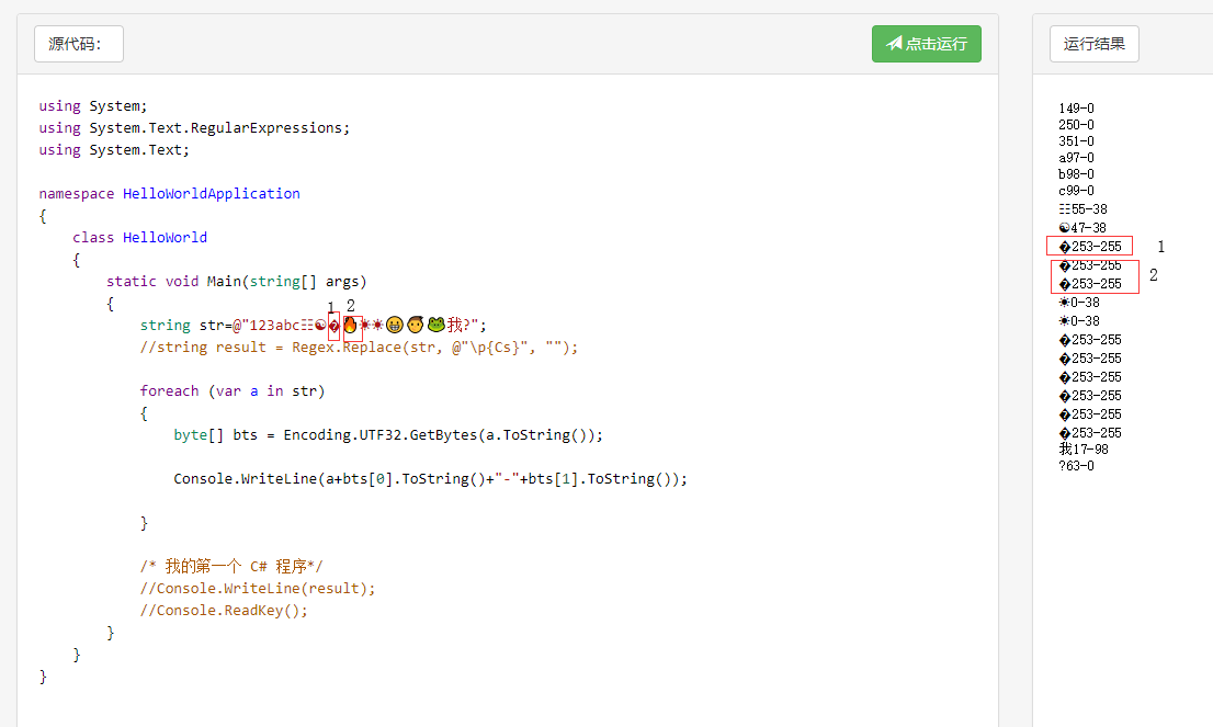 Public class Test public static void Main ConsoleWriteu2103. However if just simply copy and paste an emoji into string like it does not work. On Windows theres some basic emoji support in the console so that I can get a monochrome glyph if I type eg.